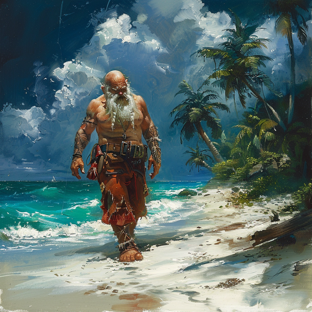 J’avais fait l’acquisition lors d’un séjour à Ludbury, une cité plus à l’ouest, d’un magnifique cimeterre dont je n’avais pas encore eu l’occasion de me servir pour sauver ma peau. Bien sûr, de tous les matelots présents, j’étais le plus aguerri. Quand on a vécu une guerre aux cotés de dieux, ce n’est pas un petit abordage qui m’aurait fait frissonner de peur mais plutôt d’impatience. Une fois les échange de boulets effectués, ces pirates à la peau jaune furent d’une précision redoutable, vînt enfin les choses sérieuses. Leurs canonnières percèrent un large trou, juste au-dessus de la ligne de flottaison, nous forçant à nous arrêter et les combattre sur notre propre pont. Avec l’agilité de ce que les humains appellent « chat », ils grimpèrent le long de la coque, lames entre les dents, couteaux à la ceinture et la rage dans les yeux.